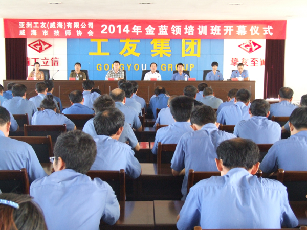 9月13日,亞洲工友(威海)有限公司、威海市技師協(xié)會2014年金藍領培訓班開幕儀式在公司技術樓四樓會議室舉行,威海市勞動和社會保障局、威海市技師協(xié)會、威海職業(yè)技術學院等相關領導以及公司木機事業(yè)部總經(jīng)理董品洲出席了開幕儀式。