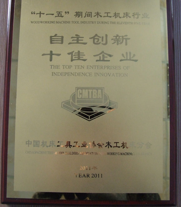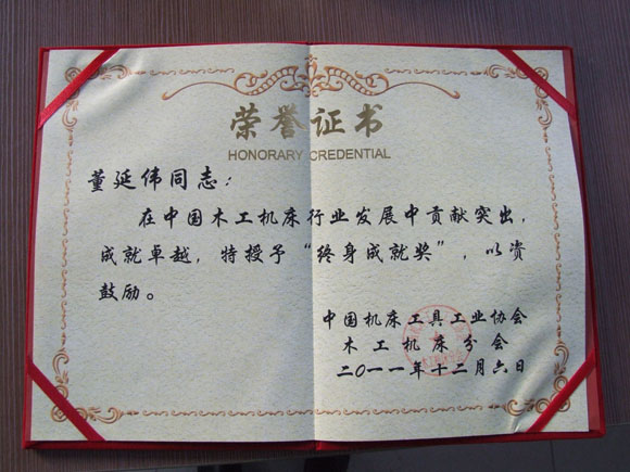 在中國機床工具工業(yè)協(xié)會木工機床分會的表彰大會上,公司被授予木工機床行業(yè)十一五“自主創(chuàng)新十佳企業(yè)”稱號,公司董事長董延偉獲得中國木工機床行業(yè)“終身成就獎”。