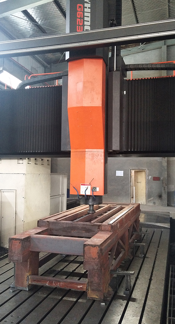 ◆橫梁采用厚壁10*200*300大方管,經(jīng)時效升溫580度自然降溫去應力,采用五面加工中心一次成型加工,保證導軌面齒條面,立柱安裝面的形位公差,然后用側(cè)銑頭打孔攻絲一次合成,從而保證裝配精度。
